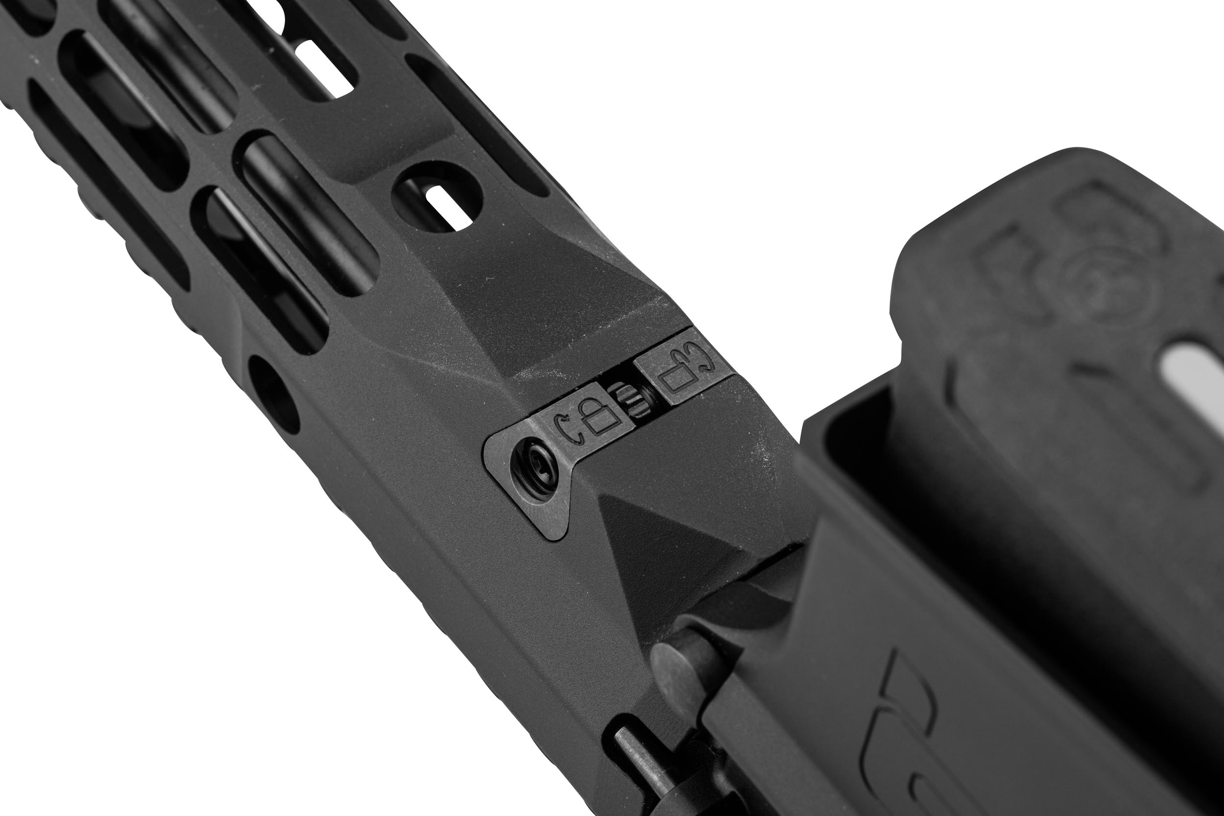 Son canon de 11.5" offre une grande maniabilité, particulièrement appréciée lors du tir sportif dynamique ou sur pas de tir courts et intermédiaires. La conception M4E1 se distingue par un upper et un lower receiver renforcés, avec une ergonomie améliorée et une finition soignée. Le garde-main flottant assure une excellente stabilité et une régularité constante au tir.