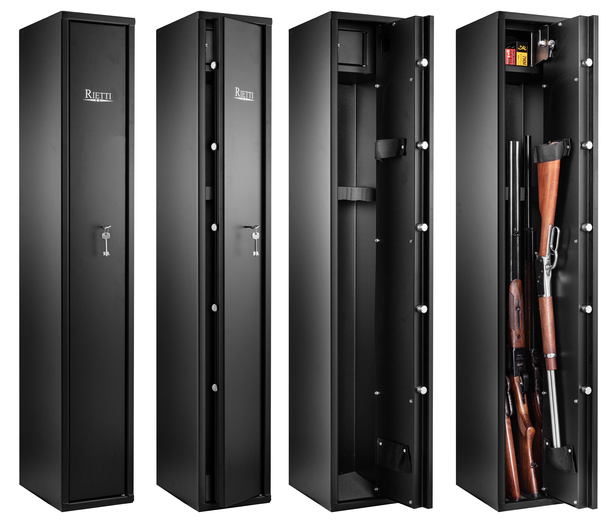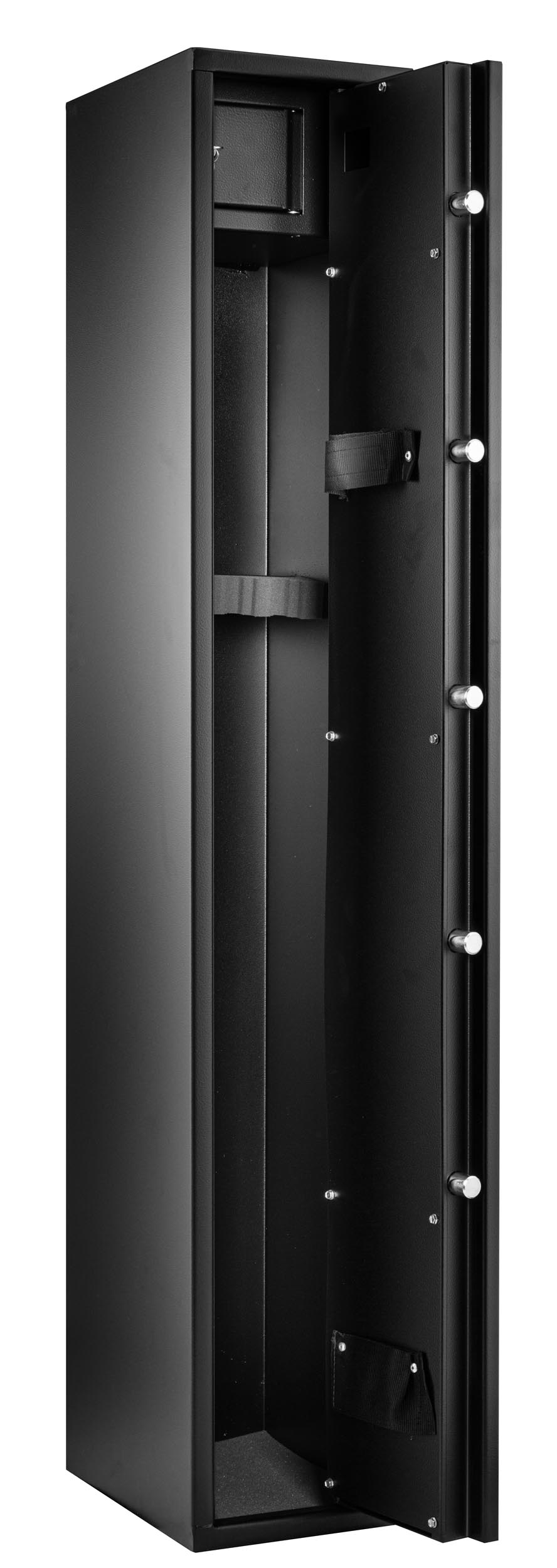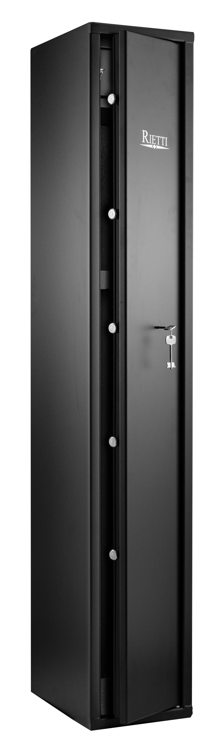 Le coffre-fort Rietti 5 armes est conçu pour répondre aux besoins des pratiquants de tir sportif souhaitant un espace de rangement sécurisé et bien organisé. Sa structure en acier de 2 mm assure une excellente rigidité, tandis que sa hauteur de 150 cm permet d’accueillir confortablement des armes longues ainsi que leurs accessoires.