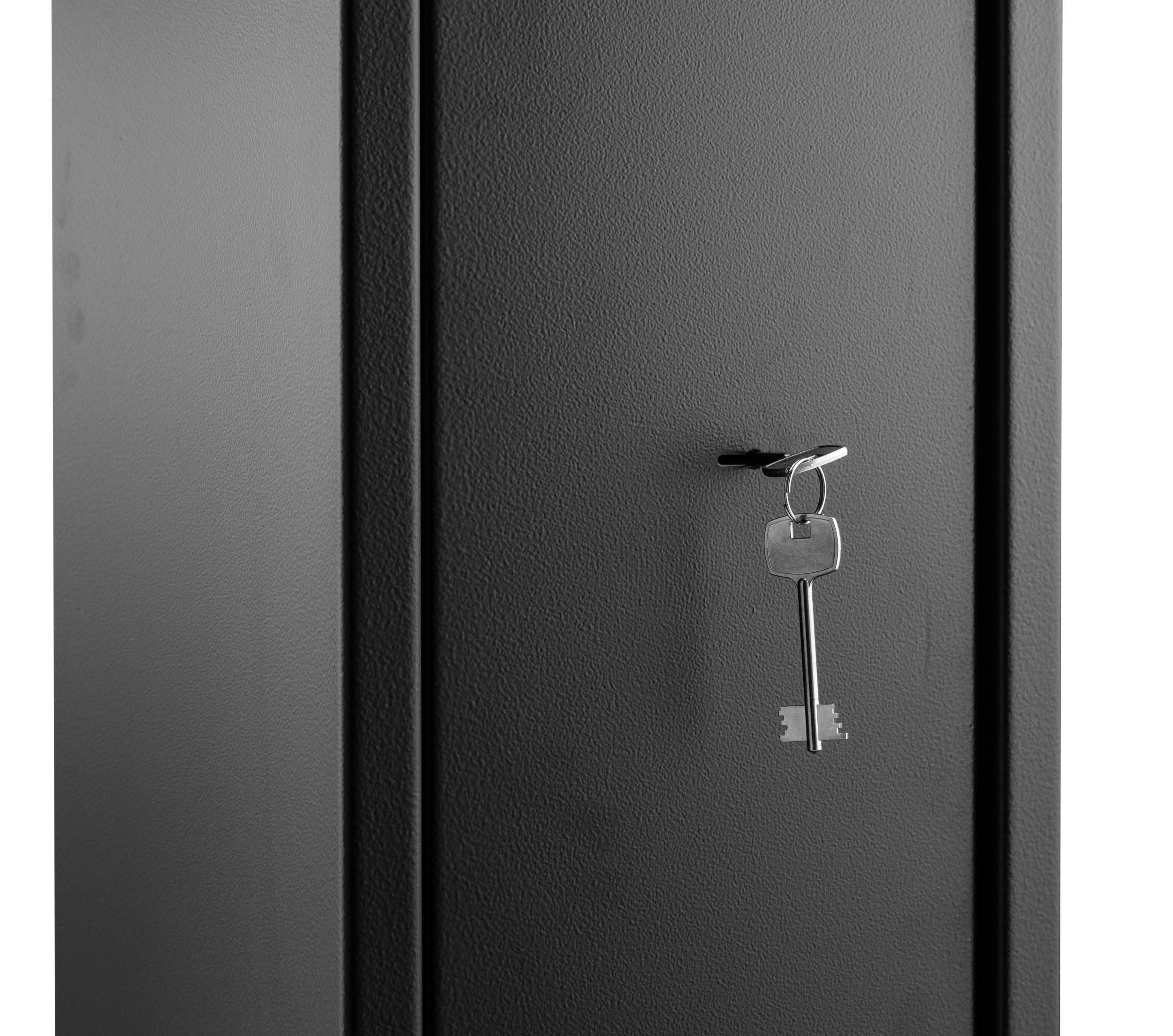 Équipé d’une serrure à clé, ce coffre privilégie la simplicité d’utilisation et la fiabilité mécanique. L’intérieur est pensé pour protéger le matériel grâce à des supports adaptés et des surfaces conçues pour éviter les chocs. Son format vertical optimise l’encombrement au sol, le rendant facile à intégrer dans un local, un bureau ou une pièce dédiée.