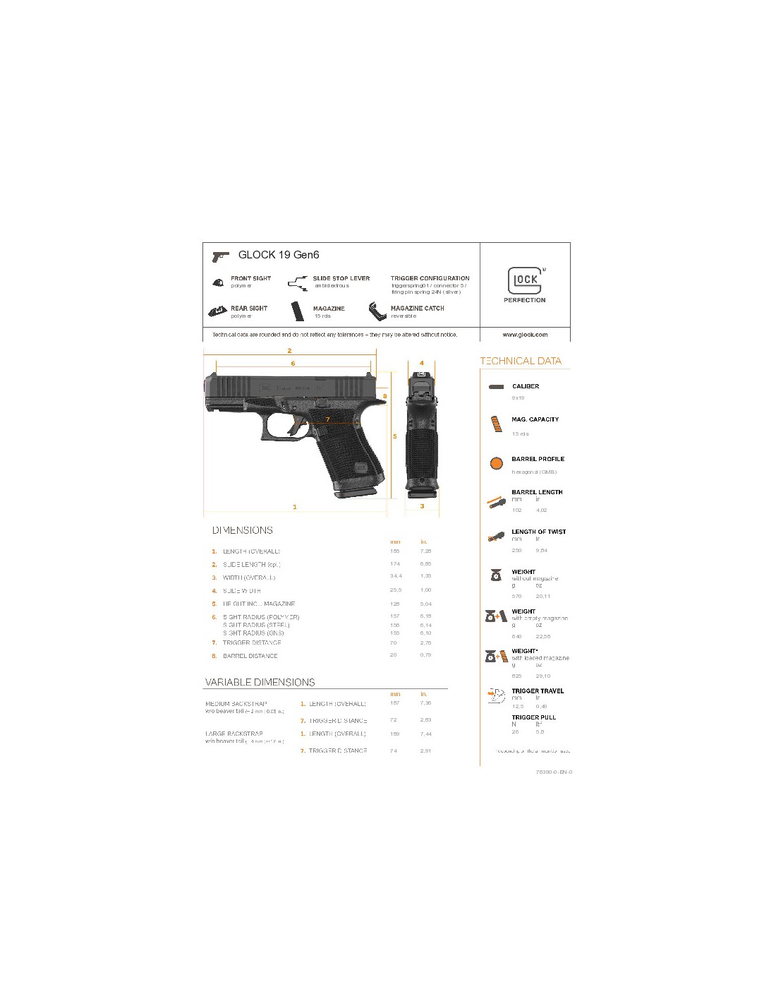 GLOCK – 19 GEN 6 OR (Optics Ready) – CAL 9X19
