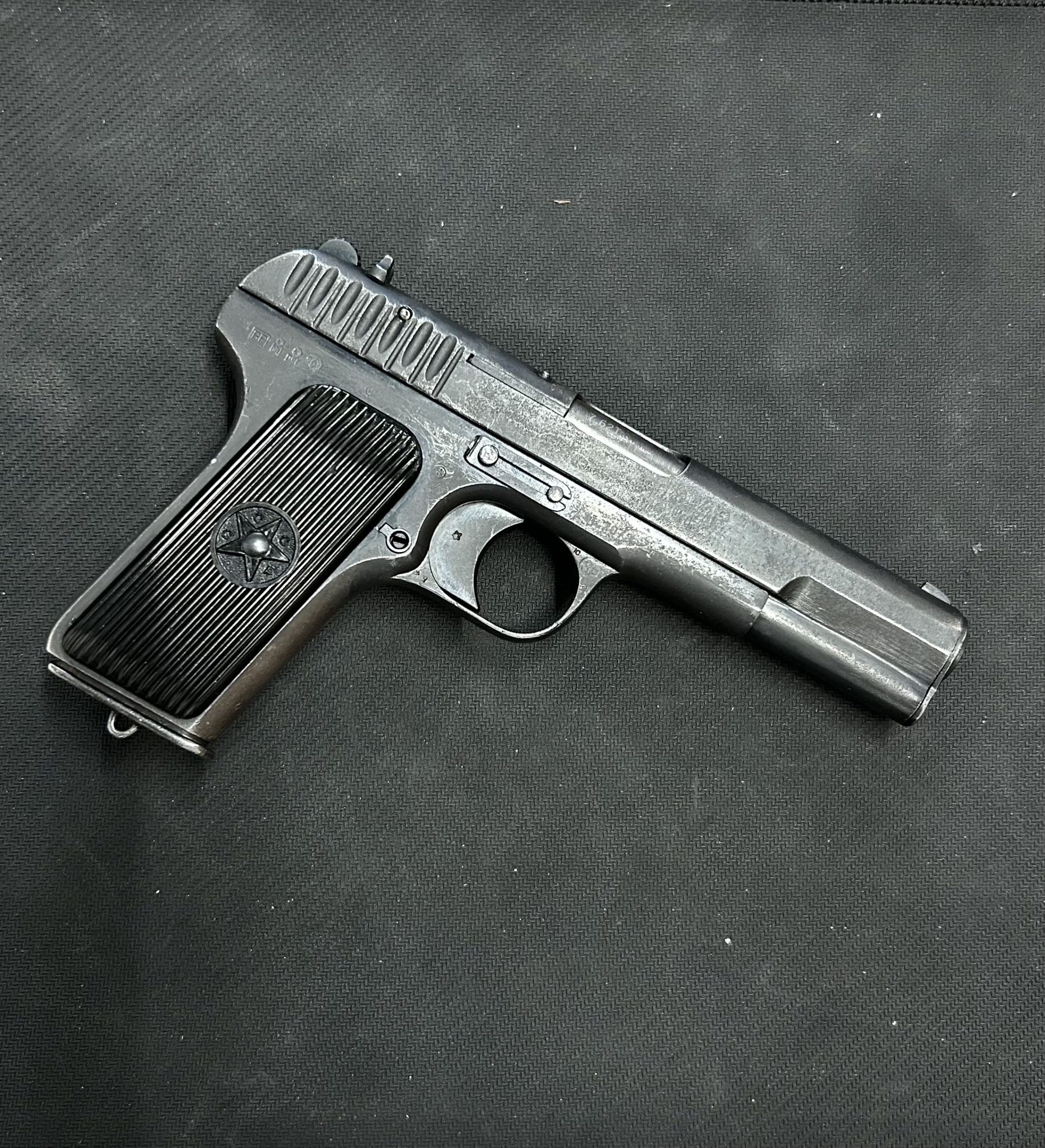Le Tokarev TT-30, conçu par Tokarev, est un pistolet emblématique à la conception robuste et épurée. Son calibre 7,62×25 Tokarev se distingue par une trajectoire tendue et un fonctionnement vif, procurant une sensation de tir nette et maîtrisée au stand.